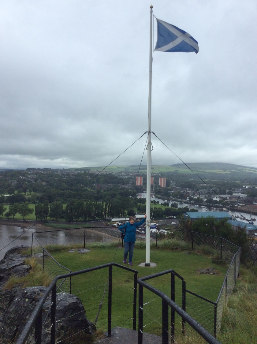 Leaving Glasgow along the M8 we crossed the Erskine Bridge (an impressive cable-stayed construction) and had a look at Dumbarton. Julie's brother Ian had lent us his Scottish National Trust cards, so we went to see Dumbarton Castle. It sits on a tall volcanic plug, like Arthur's Seat in Edinburgh, and has been a fort for fifteen hundred years. It's a steep climb up to the top, but the views over the Clyde and Dumbarton make it very worthwhile. The rain stopped and Scotland turned from monotone to colour once again, as though BBC 2 had just been switched on in 1965