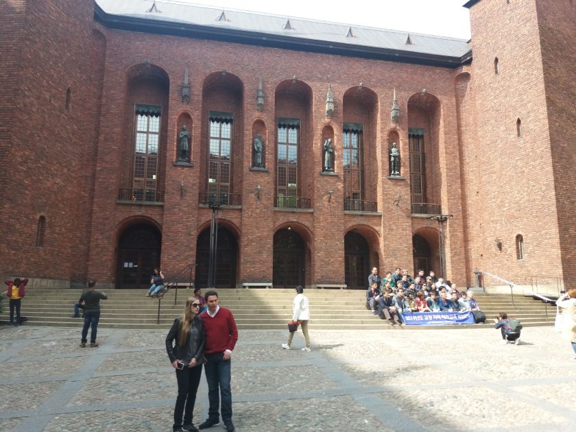 The council chamber is where the two hundred members of the city council meet, and isn’t that interesting. But I did learn that on average sixty couples a day get married in the city hall. It’s free for any Swedes, foreigners can marry for about fifty dollars. A long ceremony takes about two minutes, and a short ceremony takes forty seconds.