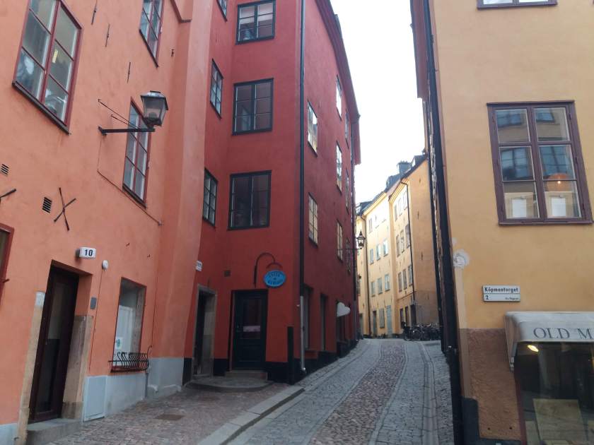 The Airport bus took us to the Central Station, where we locked up our luggage and walked to Gamla Stan. This is the medieval heart of Stockholm, on one of the many islands of this beautiful city. It has cobbled streets, tall ochre buildings, and is very neat and tidy. It’s also swarming with tourists, and has a plentiful supply of souvenir shops.