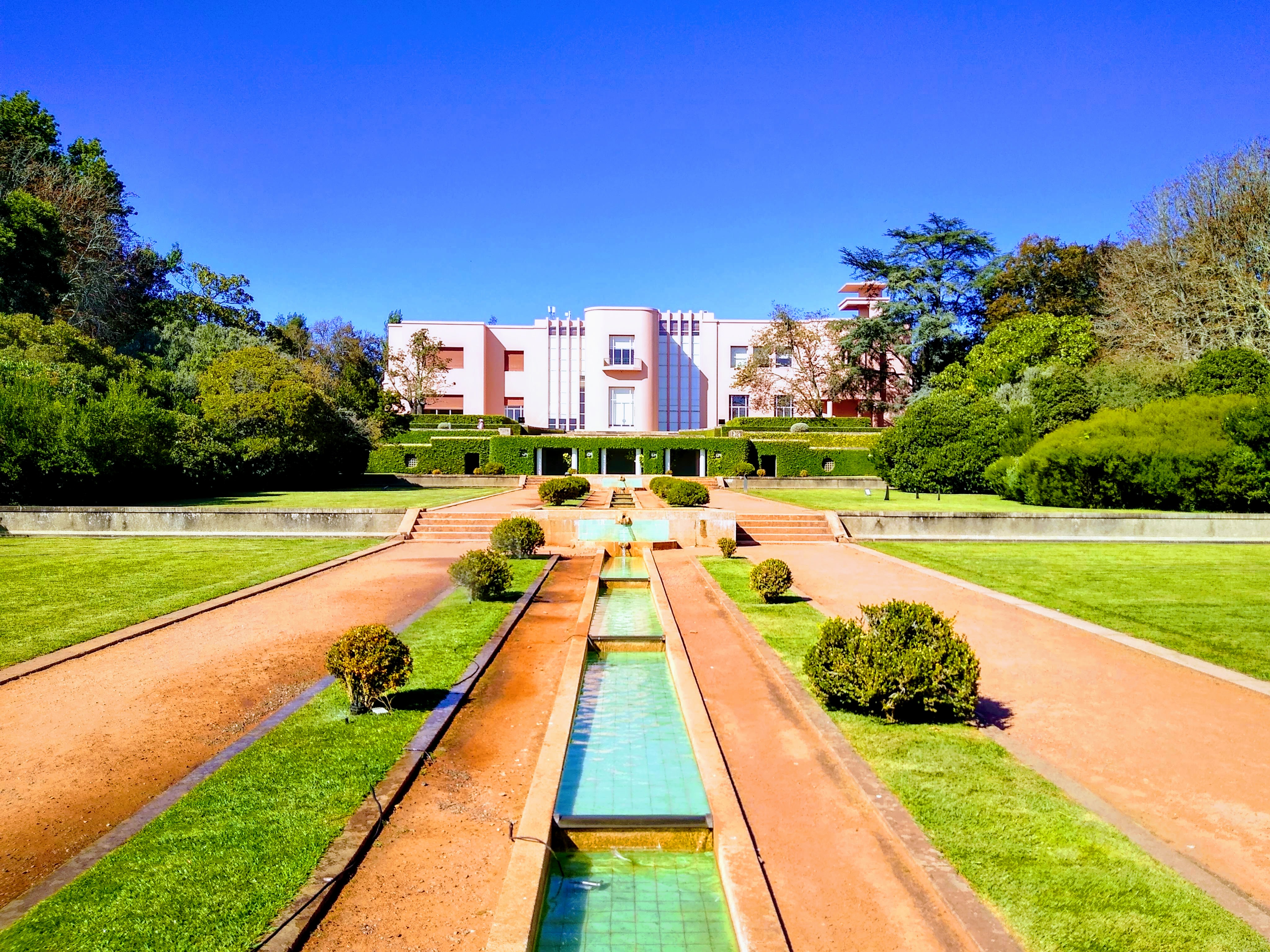 Tummy’s full, we got on yet another bus to Serralves, a modern art museum set in a beautiful park. We couldn’t just get a ticket for the park, so paid 12€ to see the modern art. It was mostly dull (my middle name is Philistine) apart from an installation with opposing mirrors which gave a clever repeating image effect. But the park is very lovely, and in it sits the Casa Serralves a stunning pink Art Deco building that houses a museum of Portuguese cinema.