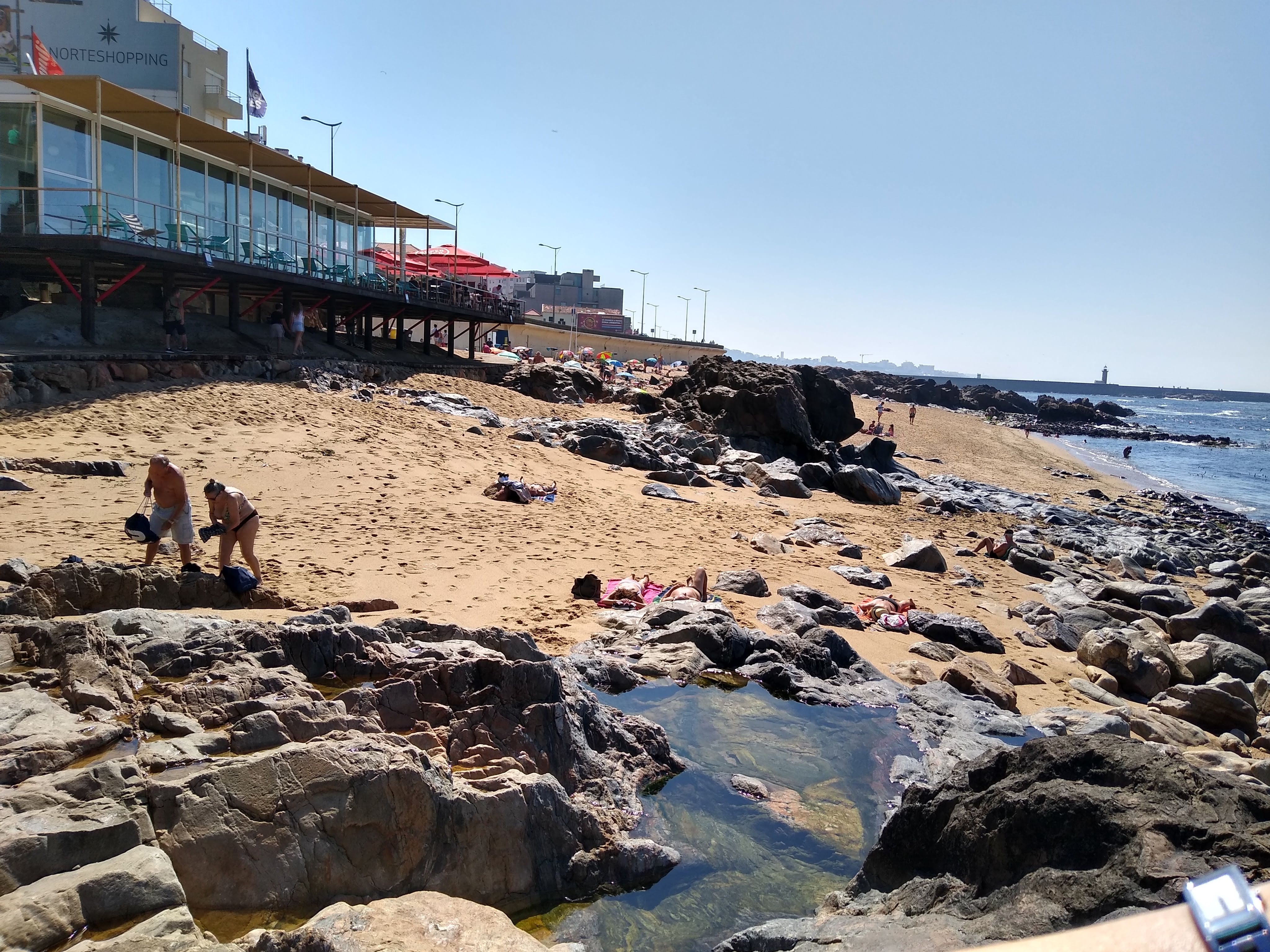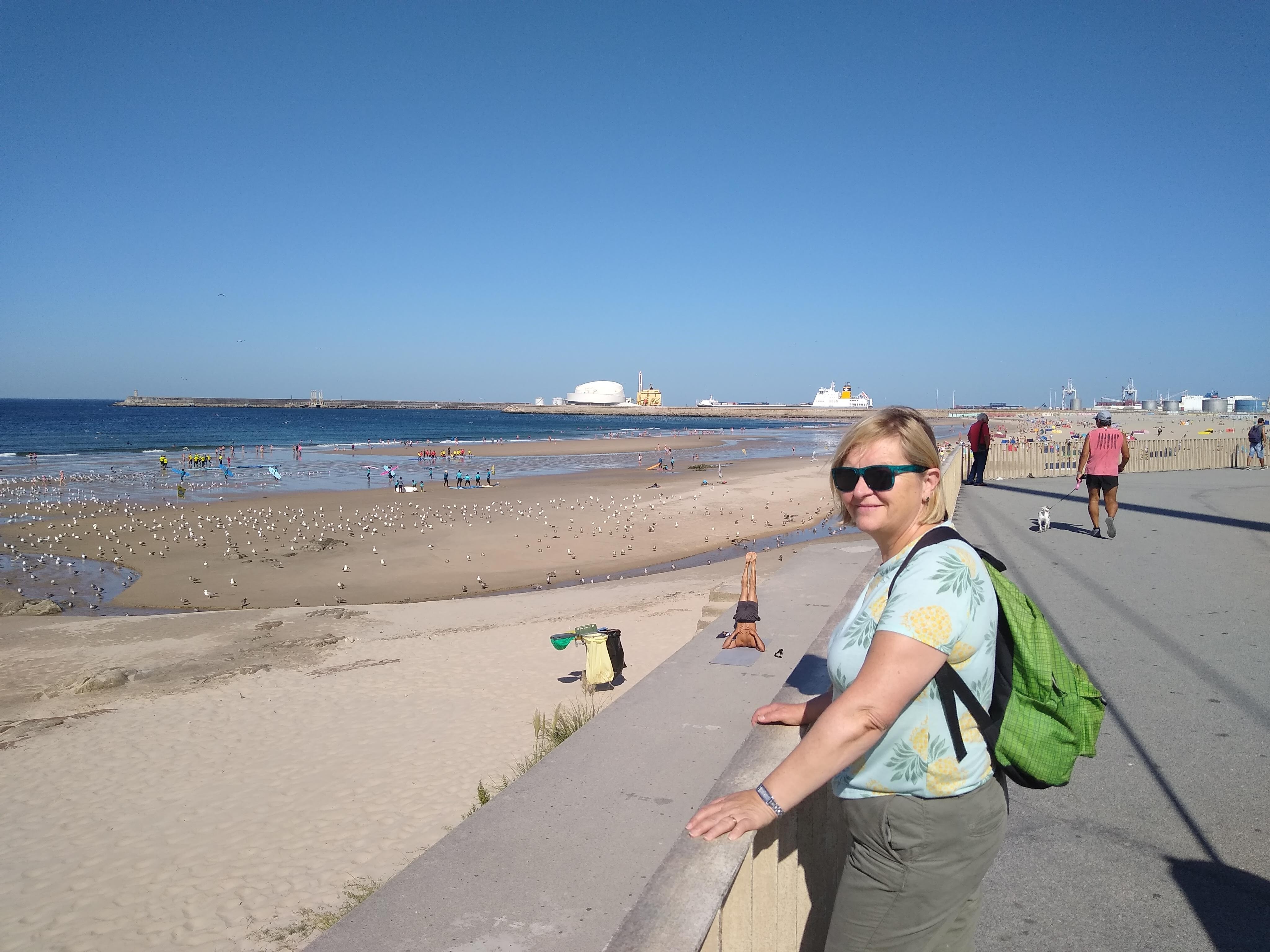 On Wednesday we got back on the 500 bus to Foz da Douro, a very pretty suburb at the point where the Douro river reaches the sea. It is small but moving up-market, as evidenced by the number of estate agents and an expensive whole foods store (like you get in Richmond). There are some lovely rocky and sandy beaches, we stopped at Praia dos Ingleses (English Beach) and sat of a big rock to watch the sea and people testing the water (but not going in).