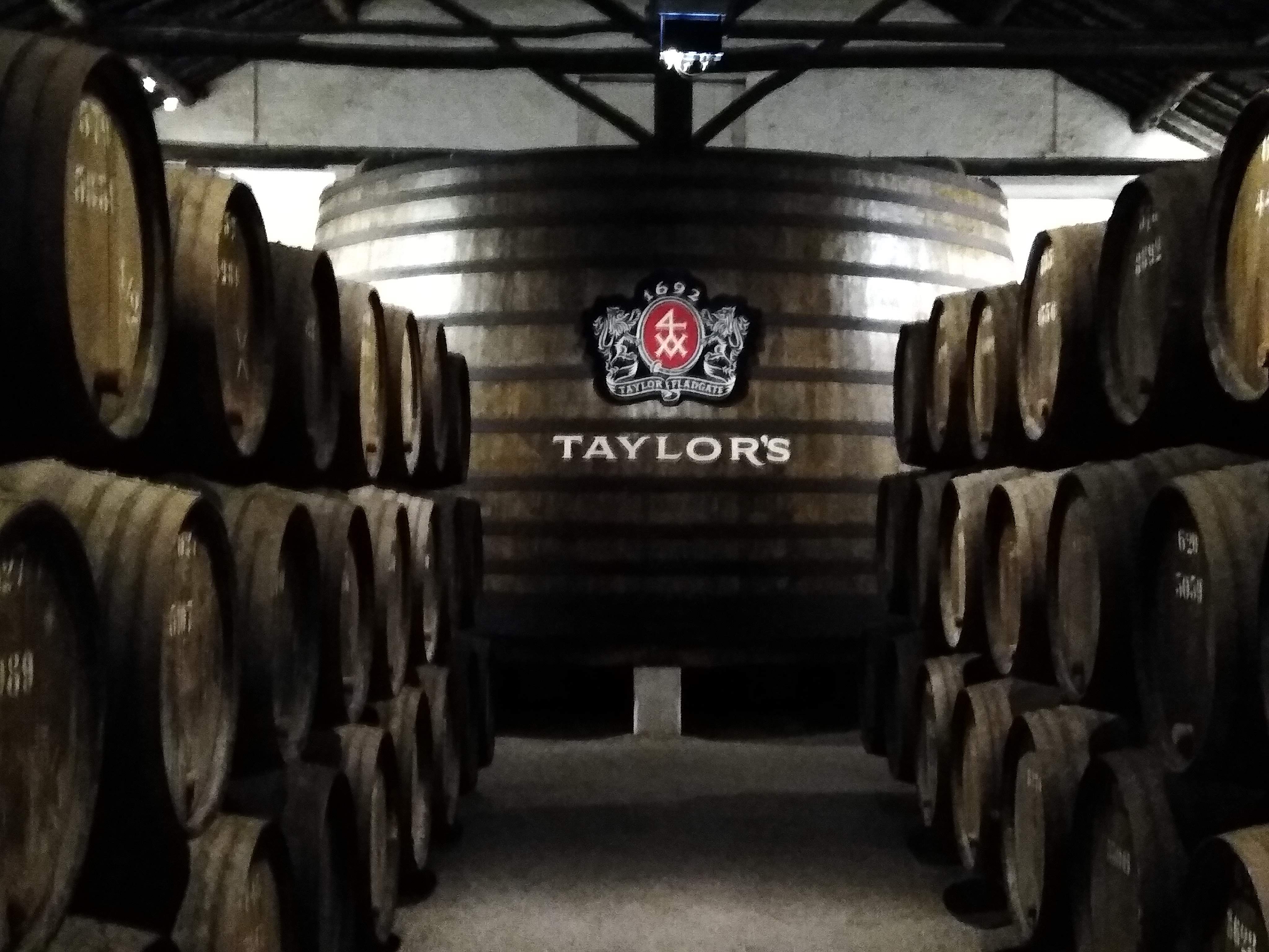 On our second full day we decided not to exert ourselves much, and keep out of the sun. So we got the Metro to Gaia on the other side of the Douro river to see how Port wine is made.Gaia is home to all the major Port producers, and they all offer tours of their facilities. After much discussion we decided on Taylors, and walked up a steep narrow street to their three hundred year old warehouses which are . The company was founded in 1692 by Job Bearsley, but is was his son which discovered the full bodied powerful wines of the Douro Valley to the east of Porto beyond the mountains. The weather there is hotter and drier, ideal for making wine with high sugar content. But Gaia, by the sea, is cooler and better for the long term storage and maturation of the wine. The casks (about 600 litres) and vats (thousands of litres) are made of oak and are kept in granite walled warehouses called lodges, which are always cool.