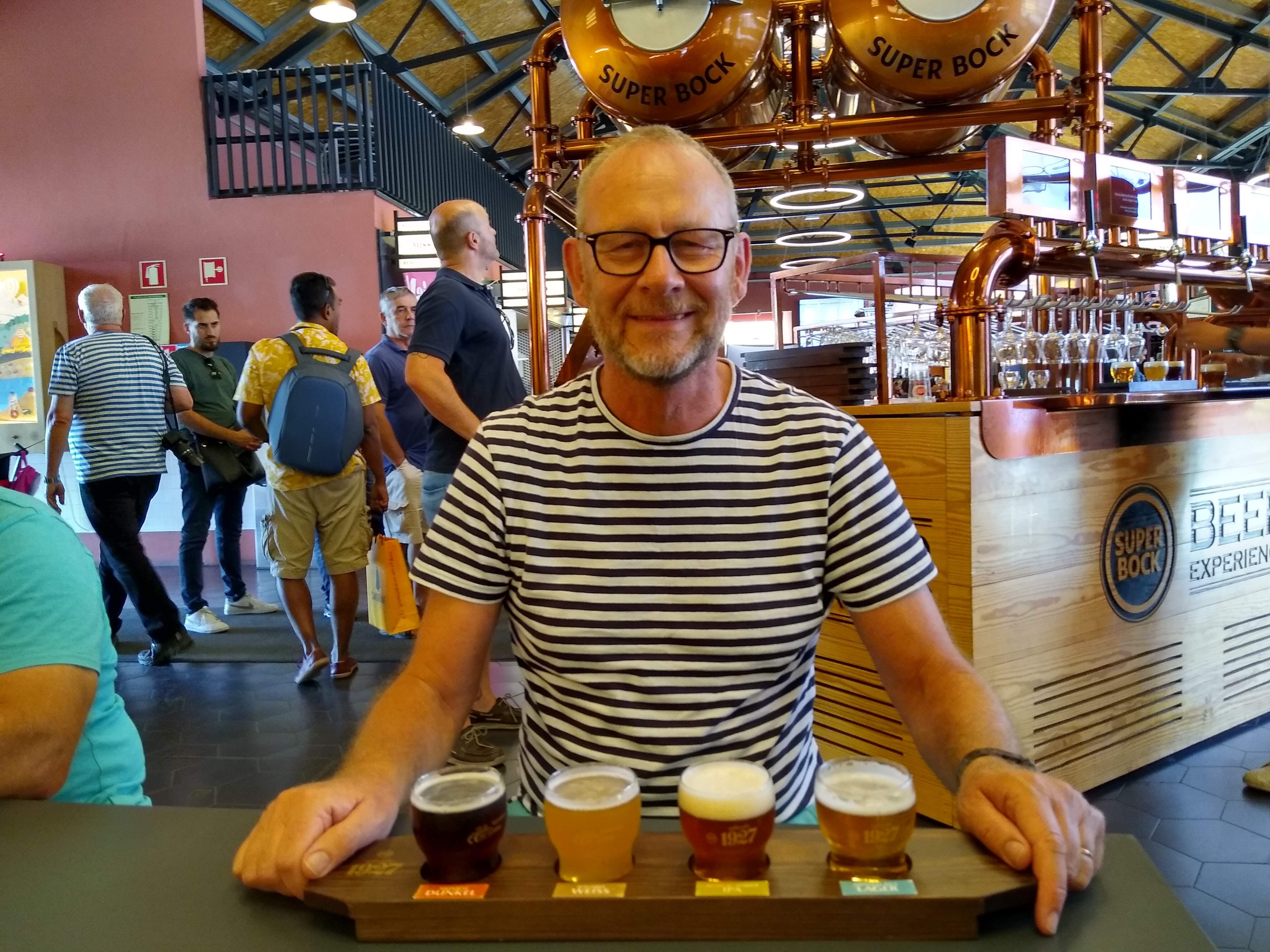 Walking down to the Gaia riverside we found a big indoor market with many stalls selling food and drink. I bought a “tasting plank” of four different beers, all quite tasty and better than the standard Superbock which appears to be the only beer available in most of Porto.