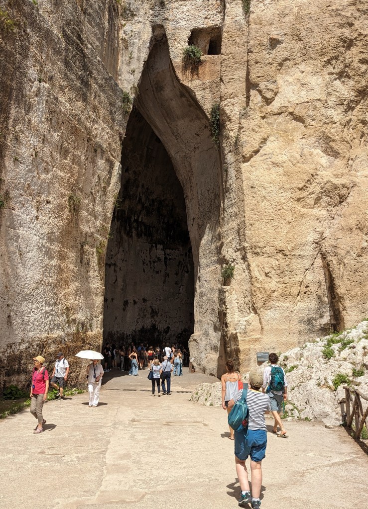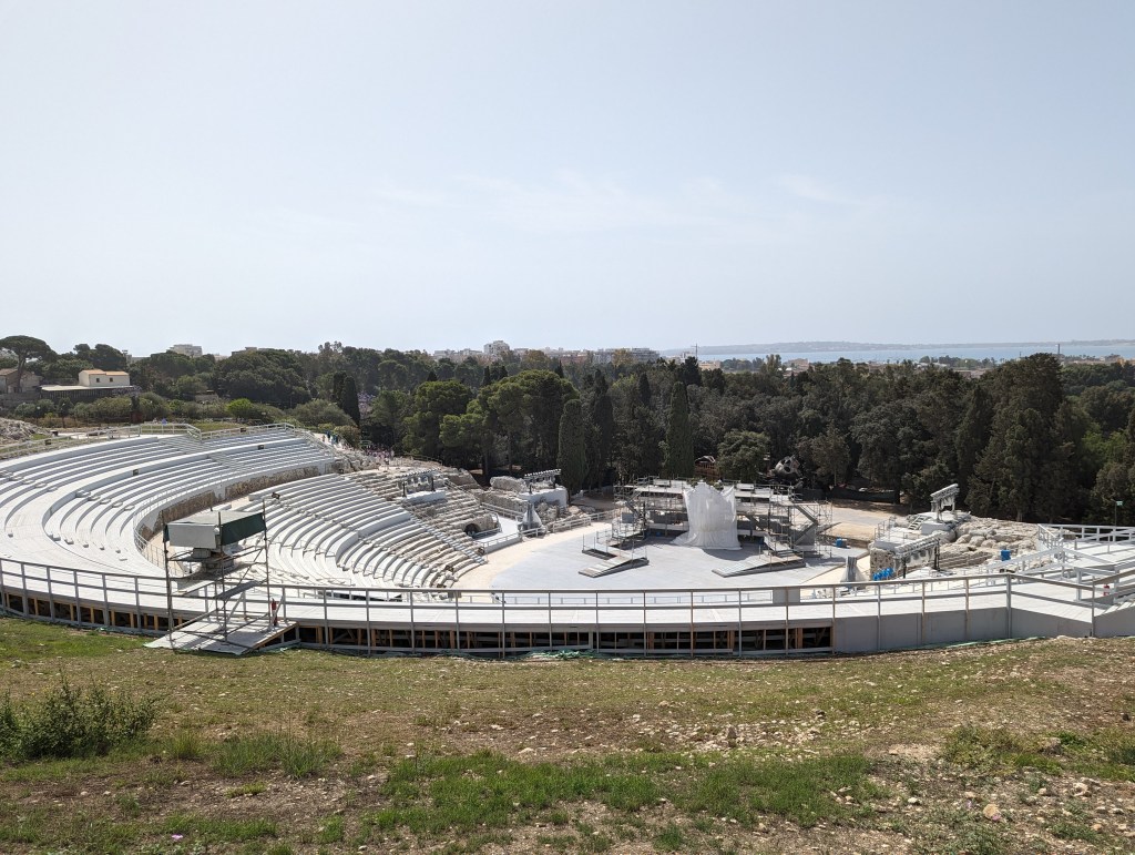 It has both a small Roman theatre and a much bigger Greek theatre. The Roman one is free to see, but you have to pay to see the Greek one. But having seen the one in Siracusa, we didn’t want to pay to see another ruin.